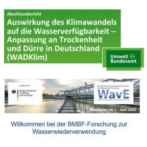 - Fördermaßnahme WavE – Zukunftsfähige Technologien und Konzepte zur Erhöhung der Wasserverfügbarkeit durch Wasserwiederverwendung und Entsalzung (2016 – 2021)