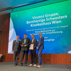 Das Barmherzige Schwestern Krankenhaus Wien ist Teil des EMAS-Umweltmanagementsystems der Vinzenz Gruppe und bekennt sich zu einer nachhaltigen und lebenswerten Zukunft. Eine intakte Umwelt und Gesundheit gehen Hand in Hand. Ein eigens ins Leben gerufene Umweltteam diskutiert regelmäßig zu umweltrelevanten Themenschwerpunkten und setzt die dabei identifizierten Maßnahmen um.