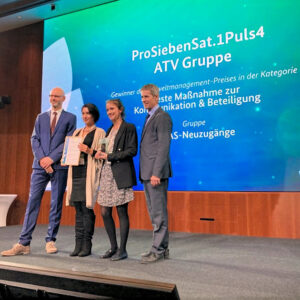 Den Umweltmanagement-Preis erhält ProSiebenSat.1Puls4 für ihre Umwelterklärung im Videoformat. Besonders überzeugend fand die Jury die unterschiedliche Aufbereitung der Umwelterklärung für spezifische Zielgruppen sowie die abwechslungsreiche und lebendige Darstellung. Darüber hinaus lobte die Jury den Innovationsgehalt der Maßnahme und die Motivationswirkung des Videos für andere Unternehmen, ebenfalls EMAS anzuwenden.
