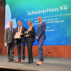 Den Umweltmanagement-Preis erhält SchwörerHaus für die SDG-Tandem-Partnerschaft mit der Württembergischen Philharmonie Reutlingen eine Klimapartnerschaft zwischen Kultur und Wirtschaft.